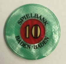 Casino Chip Plaque Jeton - 10 DM - Germany Spiebank Baden Baden Selten grün