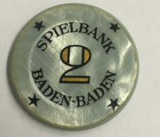 Casino Chip Plaque Jeton - 2 DM - Germany Spiebank Baden Baden Selten grau